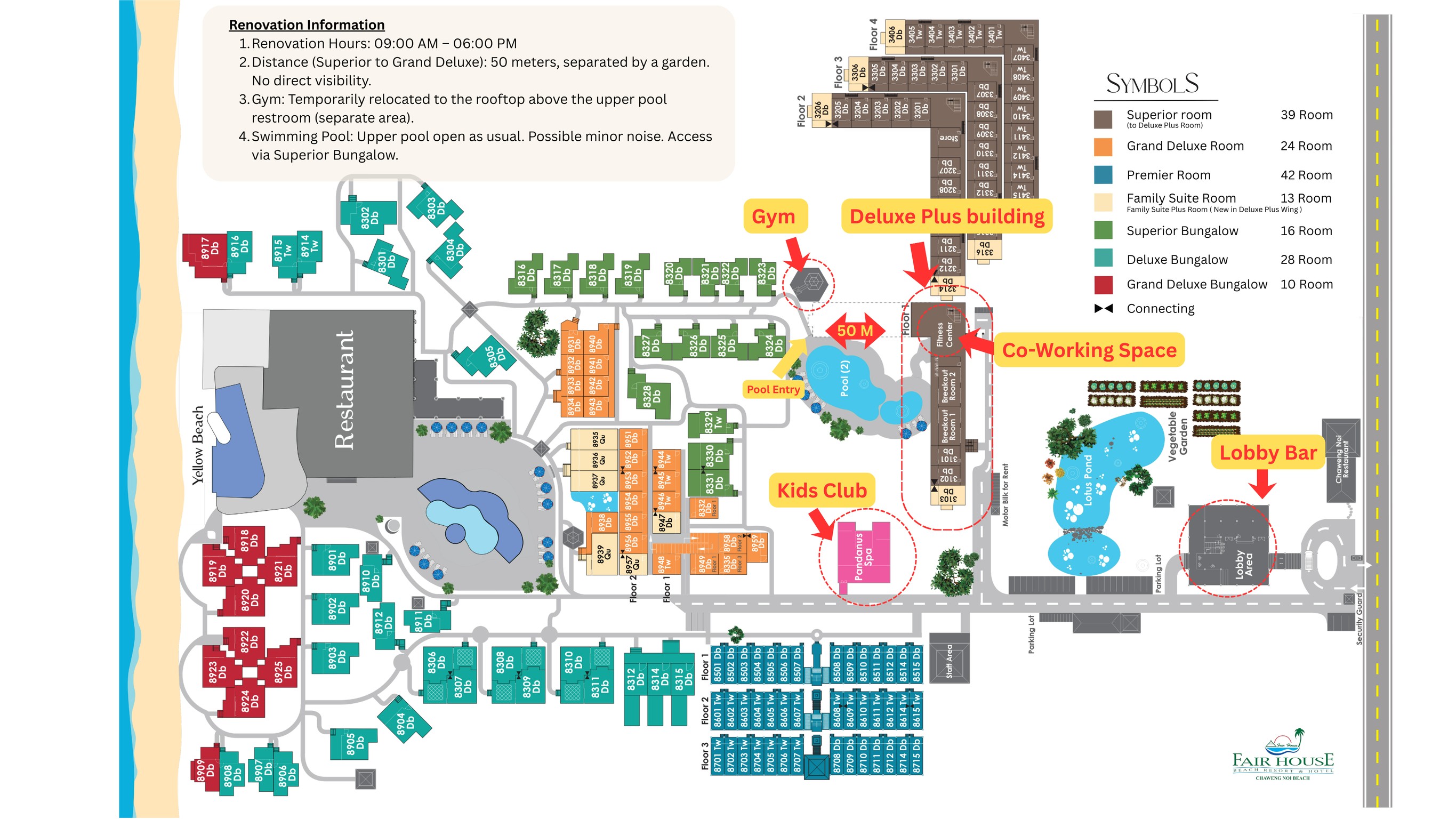 Новости отеля (25.02.2026) Информируем о реновации в отеле. Период работ: с 1 сентября по 22 декабря 2026 года, ежедневно с 09:00 до 18:00. Корпуса Superior и Grand Deluxe находятся в 50 метрах друг от друга, разделены садом и не просматриваются. Бассейн работает, доступ через бунгало Superior. (скачать карту отеля)